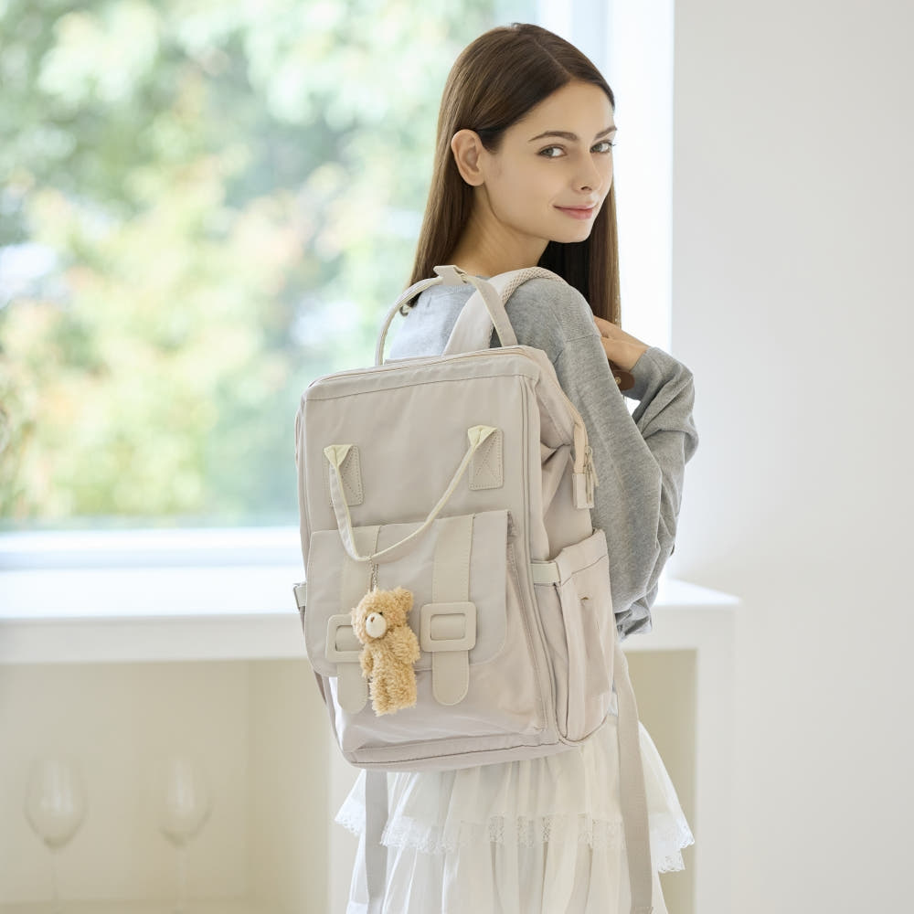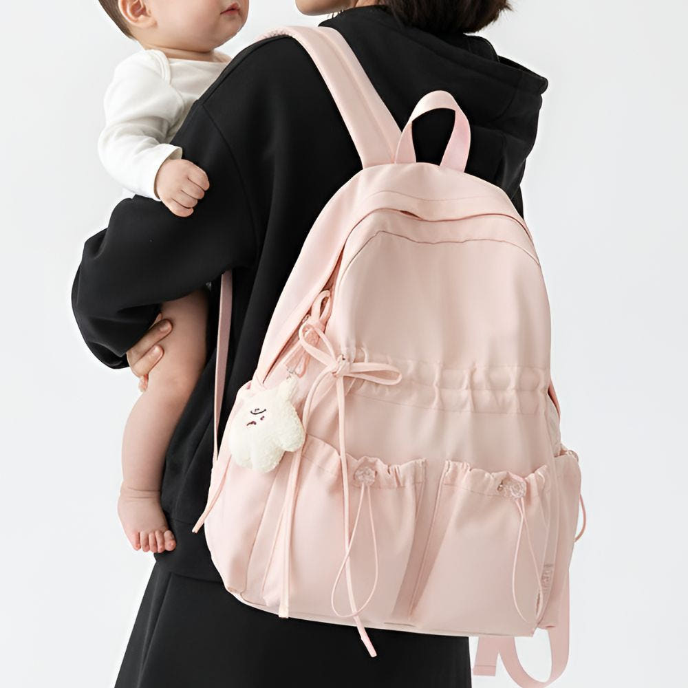 러블리한 리본 디테일과 스트링 디자인이 돋보이는 경량 백팩으로 미니멀한 감성을 선호하신다면 만족하실 겁니다. 가벼운 무게감 덕분에 가벼운 산책이나 짧은 외출 시 부담 없이 들기 좋죠. 트렌디한 디자인 덕분에 기저귀가방처럼 보이지 않는다는 점이 매력적입니다.